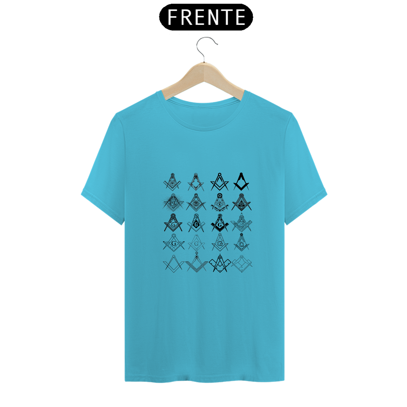 Camiseta "ESQUADROS E COMPASSOS" traz 20 modelos distintos que esquadro e compasso, que foram surgindo com o passar dos anos.