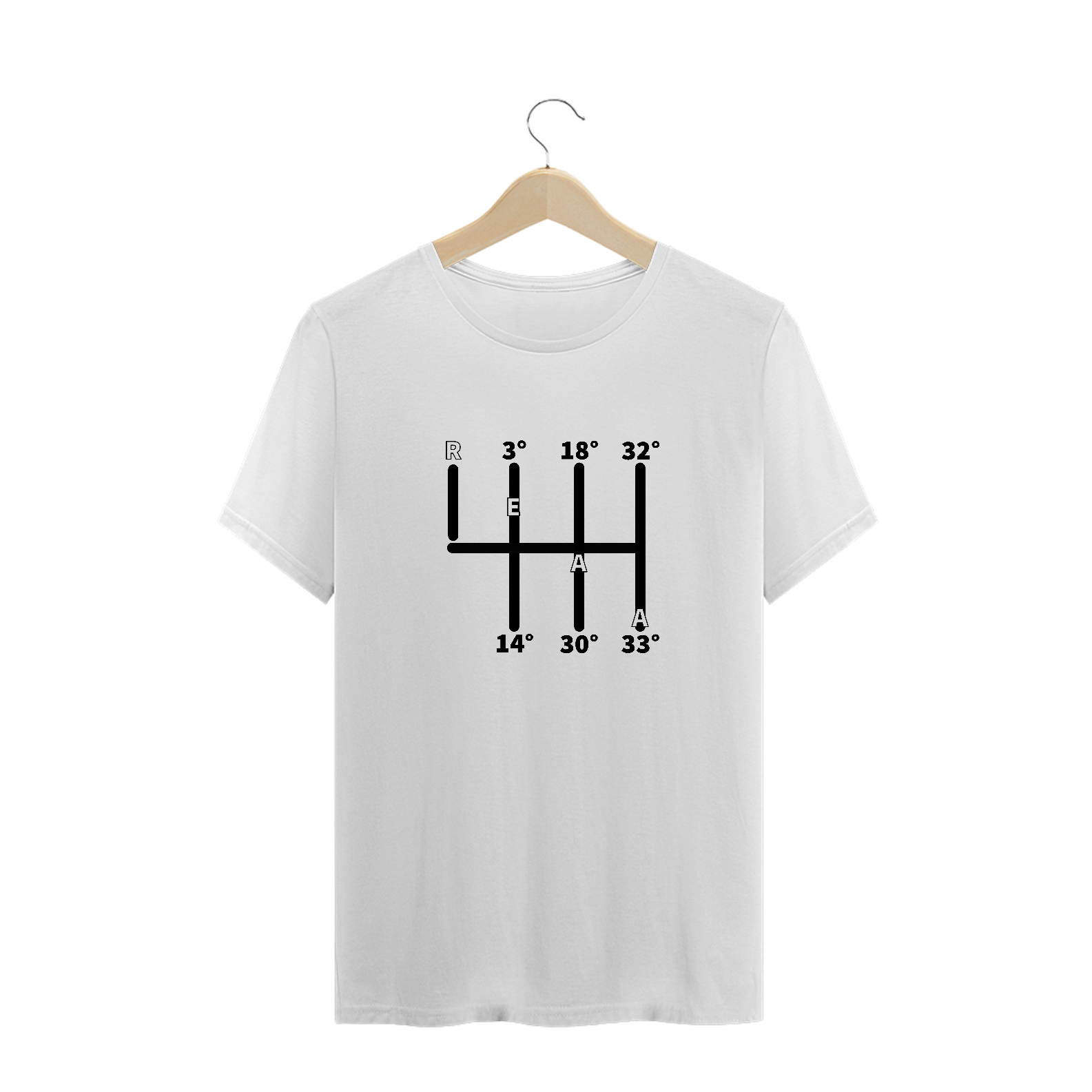 Camiseta "MARCHAS DO REAA", apresenta a progressão em suas diferentes etapas do último grau de cada corpo do Rito Escocês Antigo e Aceito.