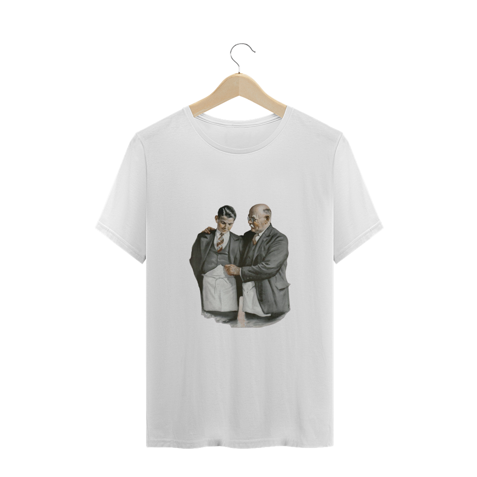 Camiseta O APRENDIZ ADMITIDO. Traz o desenho do artista Sam Brown, "The proud father" (1927).