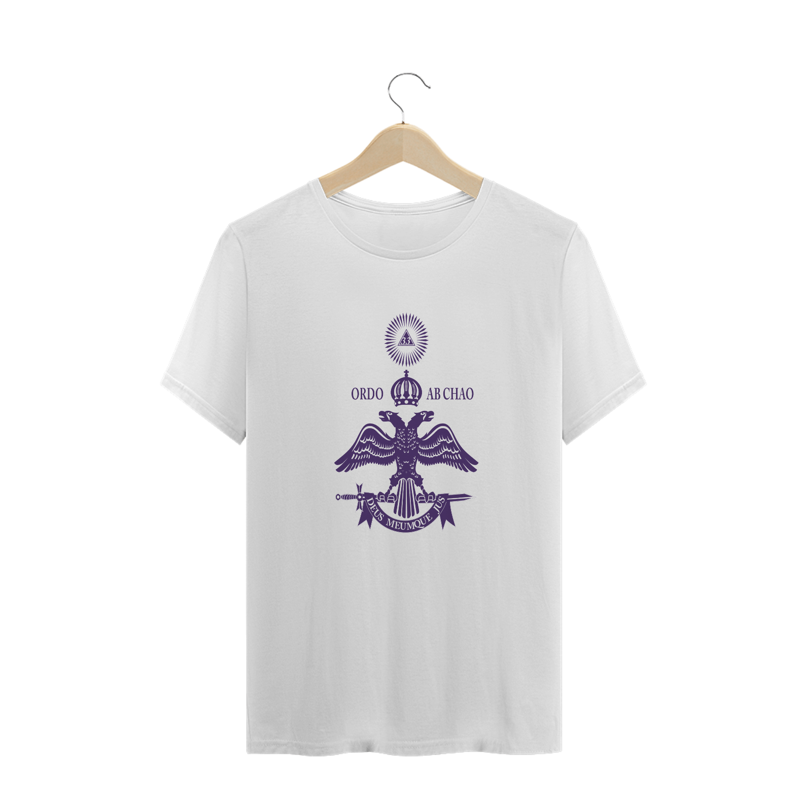 Camiseta "REAA", traz o símbolo maior do Rito Escocês Antigo e Aceito estampado: A águia bicéfala com uma coroa sobre as cabeças e, acima desta, um triângulo reluzente com o número 33. A águia está pousada em uma espada, a partir da qual repousa uma fita com o moto DEUS MEUMQUE JUS. Vê-se ainda o lema do rito: ORDO AB CHAO.